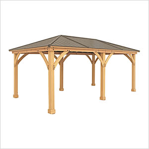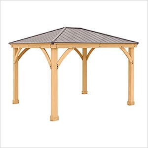Sunjoy Group 13 x 15 Wooden Hardtop Gazebo with 2-Tier Metal Roof