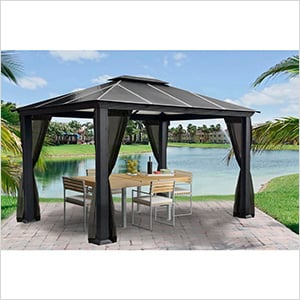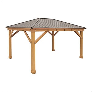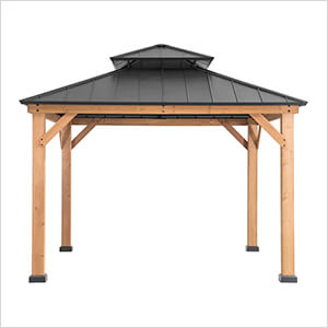 Sunjoy Group 10 x 12 Cedar Framed Gazebo with Steel Hardtop (Black Roof)