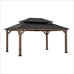 Sunjoy Group 13 x 15 Wooden Hardtop Gazebo with Ceiling Hook (Brown Roof)