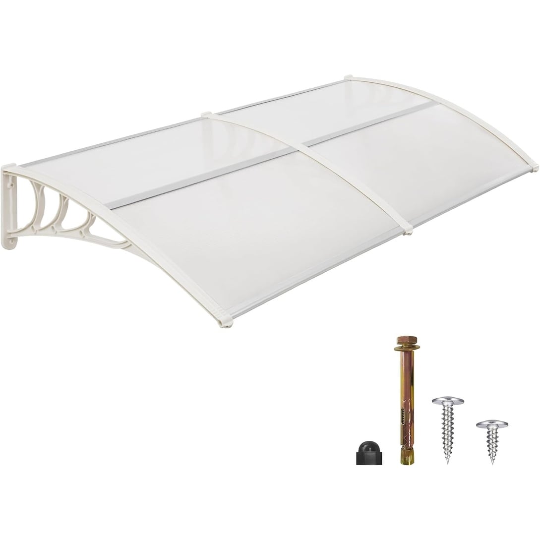 32x48 Inch Door Awning with Polycarbonate Cover, UV & Weather Protection for Porch, Patio, Deck