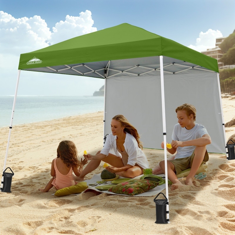 EAGLE PEAK 10x10 Pop Up Canopy Tent with Sidewall, Portable Slant Leg Instant Sun Shelter, 10x10 Base 8x8 Top, Green