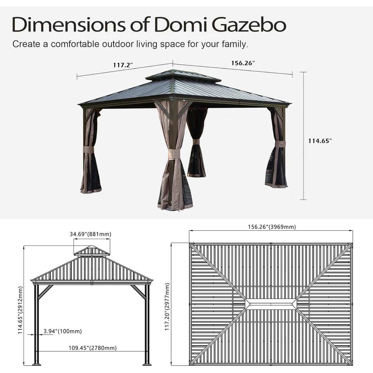 Hardtop Outdoor Metal Gazebo Canopy With Galvanized Steel Double Roof And Aluminum Frame