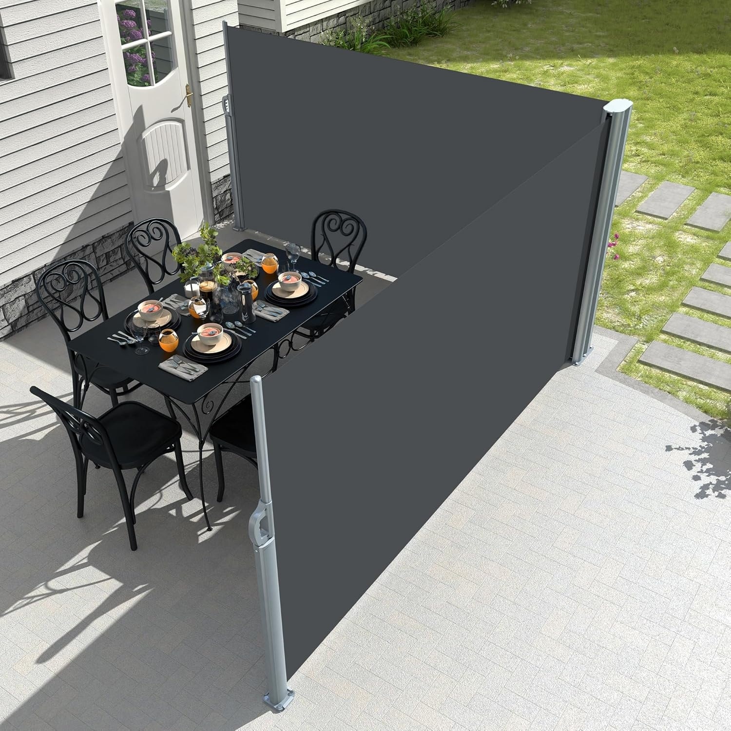 Retractable Double-Sided Patio Awning, Full Aluminum, Water & UV Resistant, Dark Grey