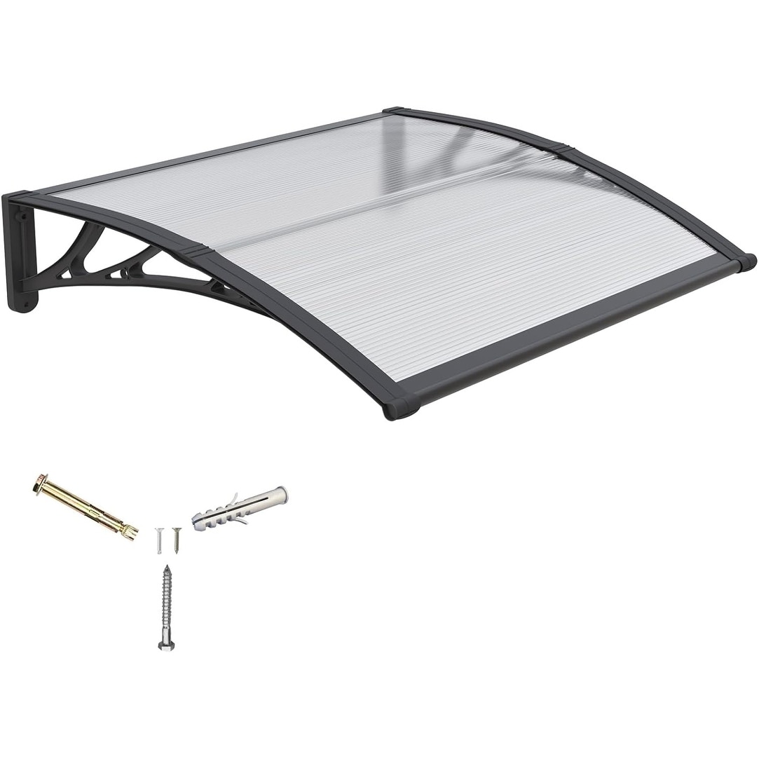 40x60 Inches Polycarbonate Door Awning with Drainage, UV Rain Snow Protection for Porch Patio Window Deck