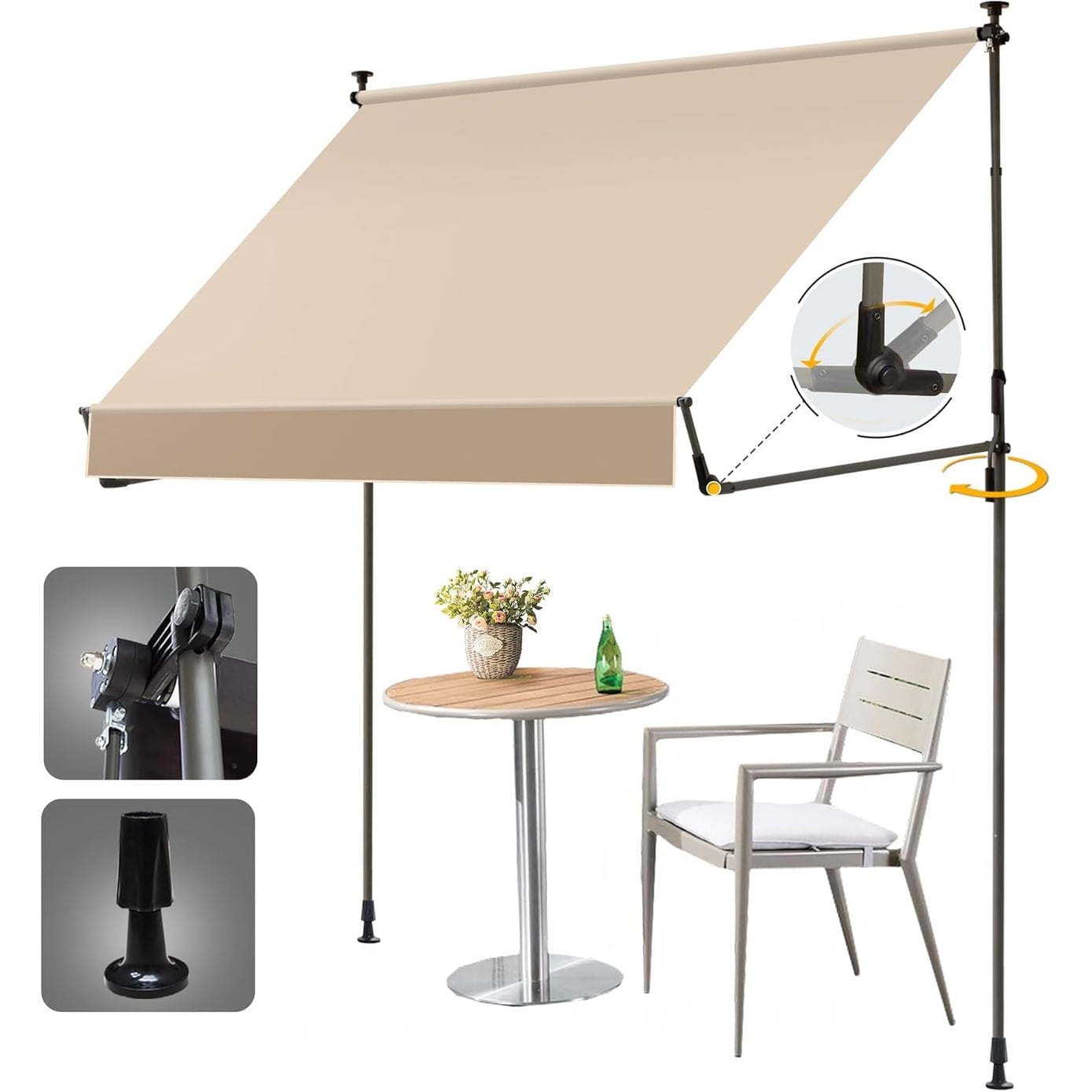 Manual Retractable Awning 79x118 Inches, Adjustable Height 82-118in, UV 50+ Protection, No Drilling Required