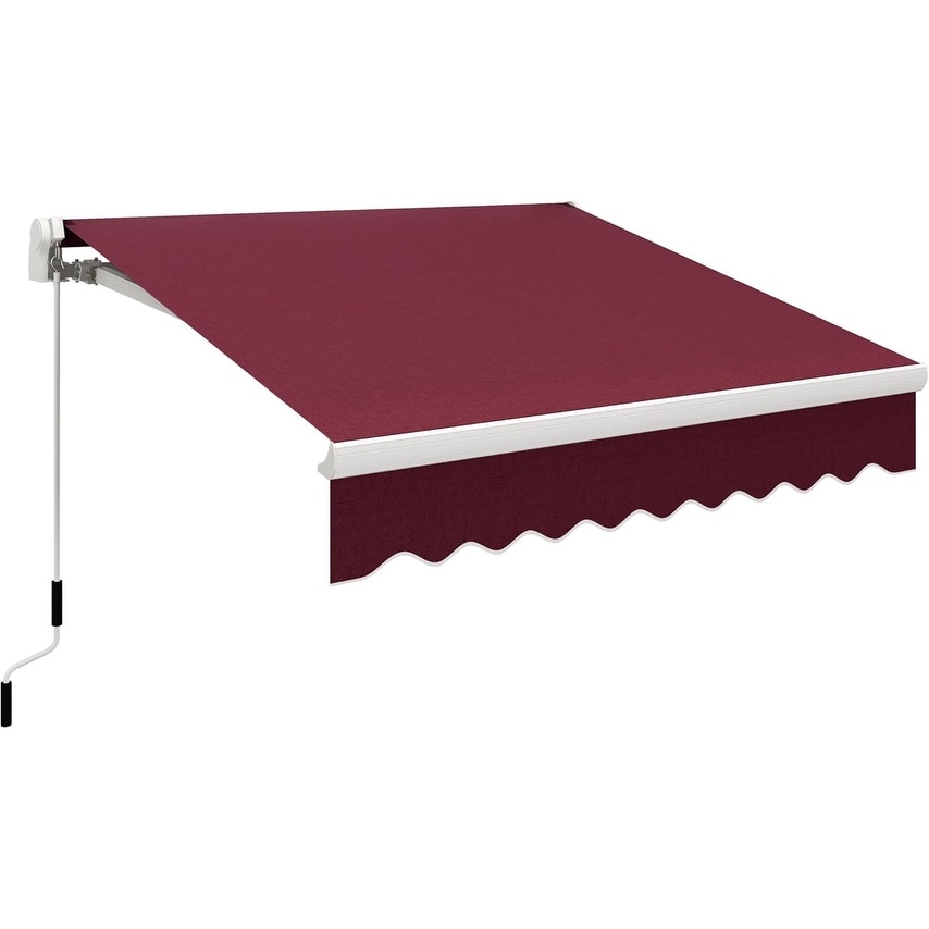 8' x 7' Manual Retractable Patio Awning, Adjustable Sun Shade for Windows and Doors, Wine Red