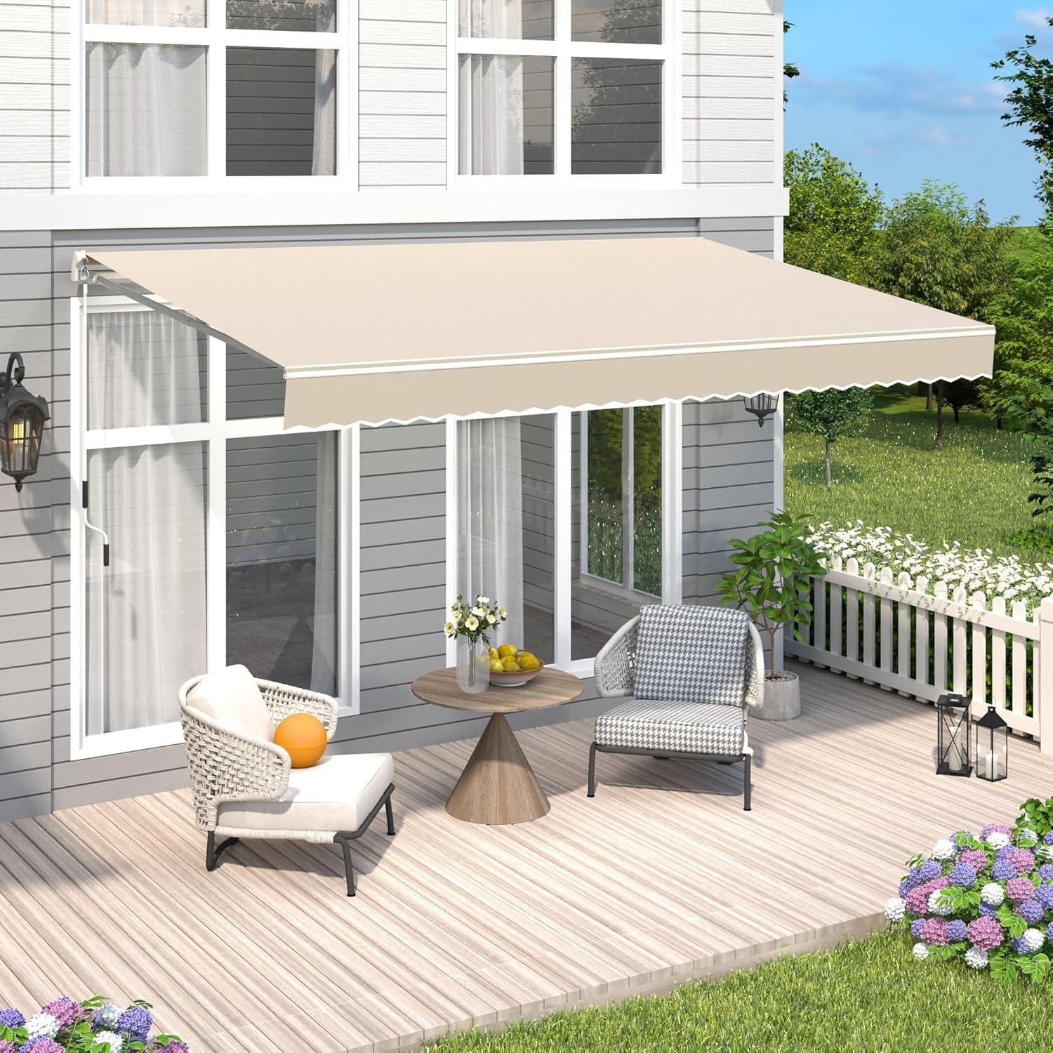8.2'x6.5' Retractable Patio Awning with Crank Handle, Water-Resistant Polyester Sunshade Shelter for Outdoor Spaces