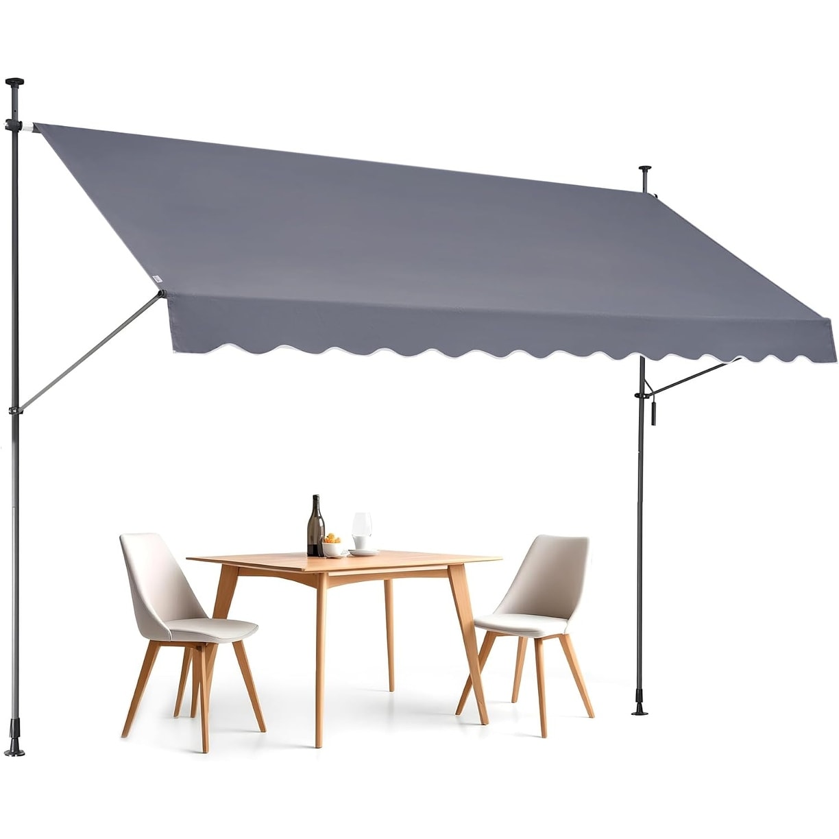 138-inch Retractable Patio Awning, Manual Sunshade Shelter with Adjustable Height for Garden, Balcony, Dark Gray