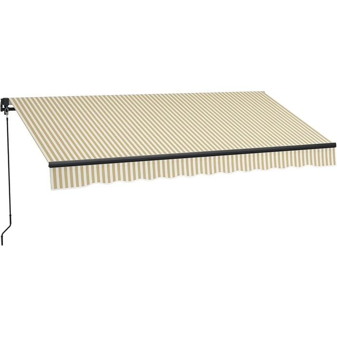 12' x 10' Manual Retractable Patio Awning with UV Resistant Fabric and Adjustable Tilt for Deck, Balcony, Yard