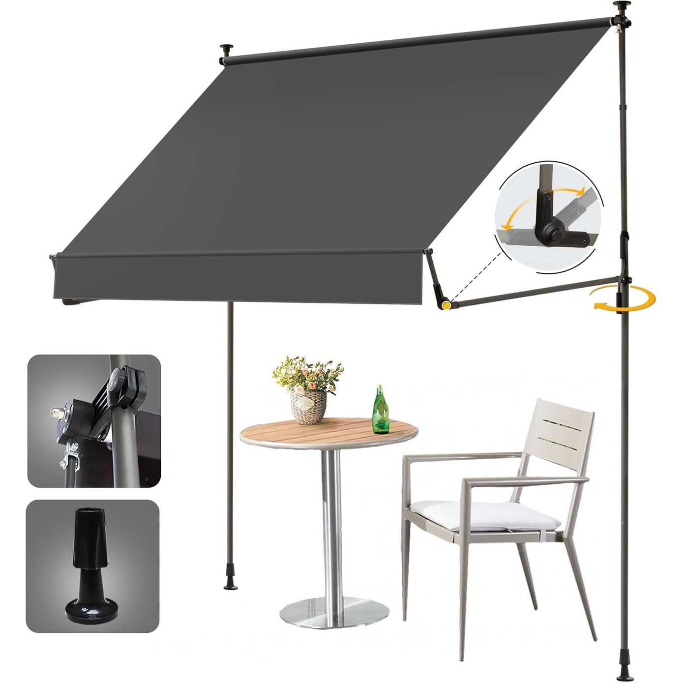Manual Retractable Awning 118-inch Width, Adjustable Height Sunshade for Patio, UV Protection, Steel Frame, Premium Fabric