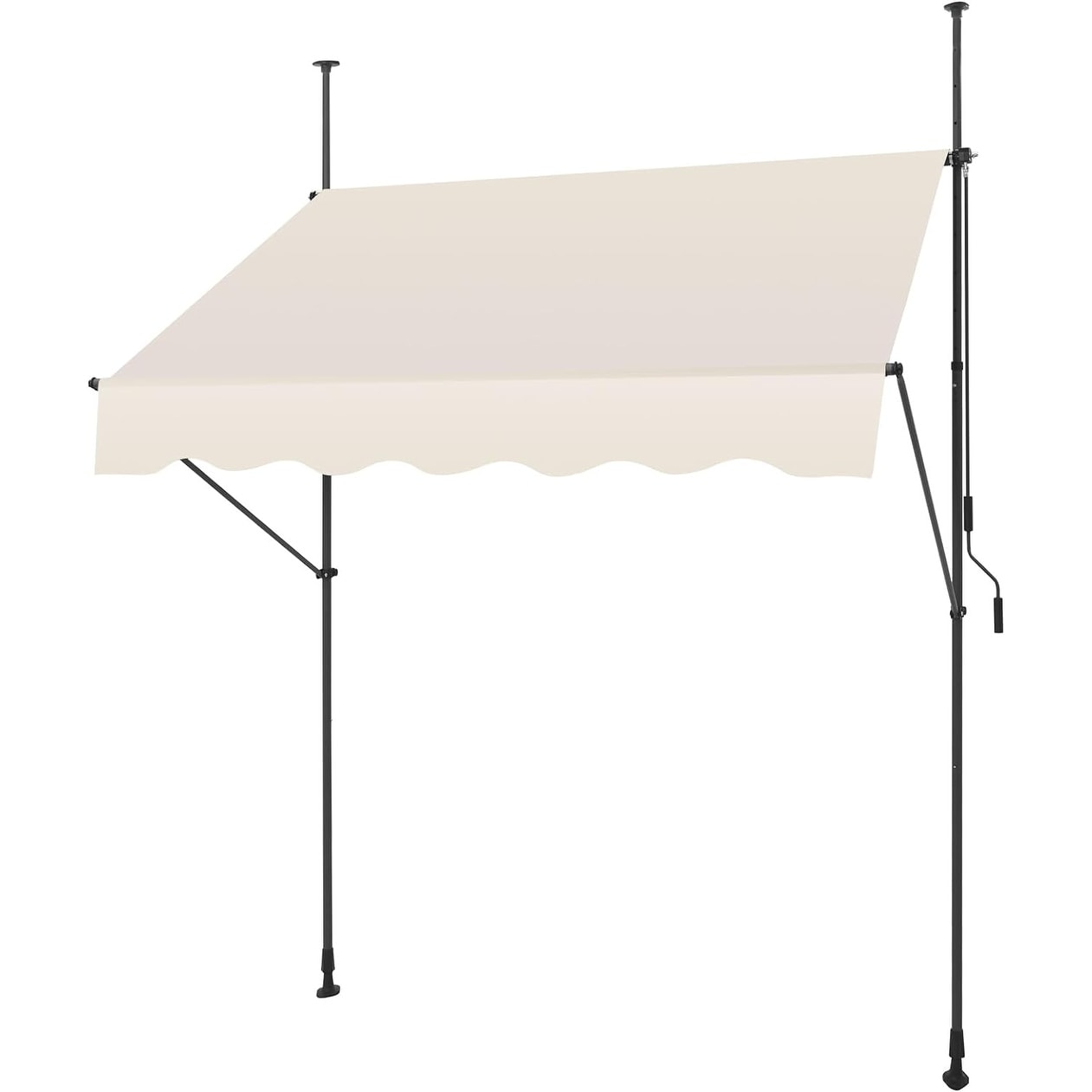 Manual Retractable Patio Awning, Adjustable Sunshade for Outdoor Door, Window, Balcony, Beige