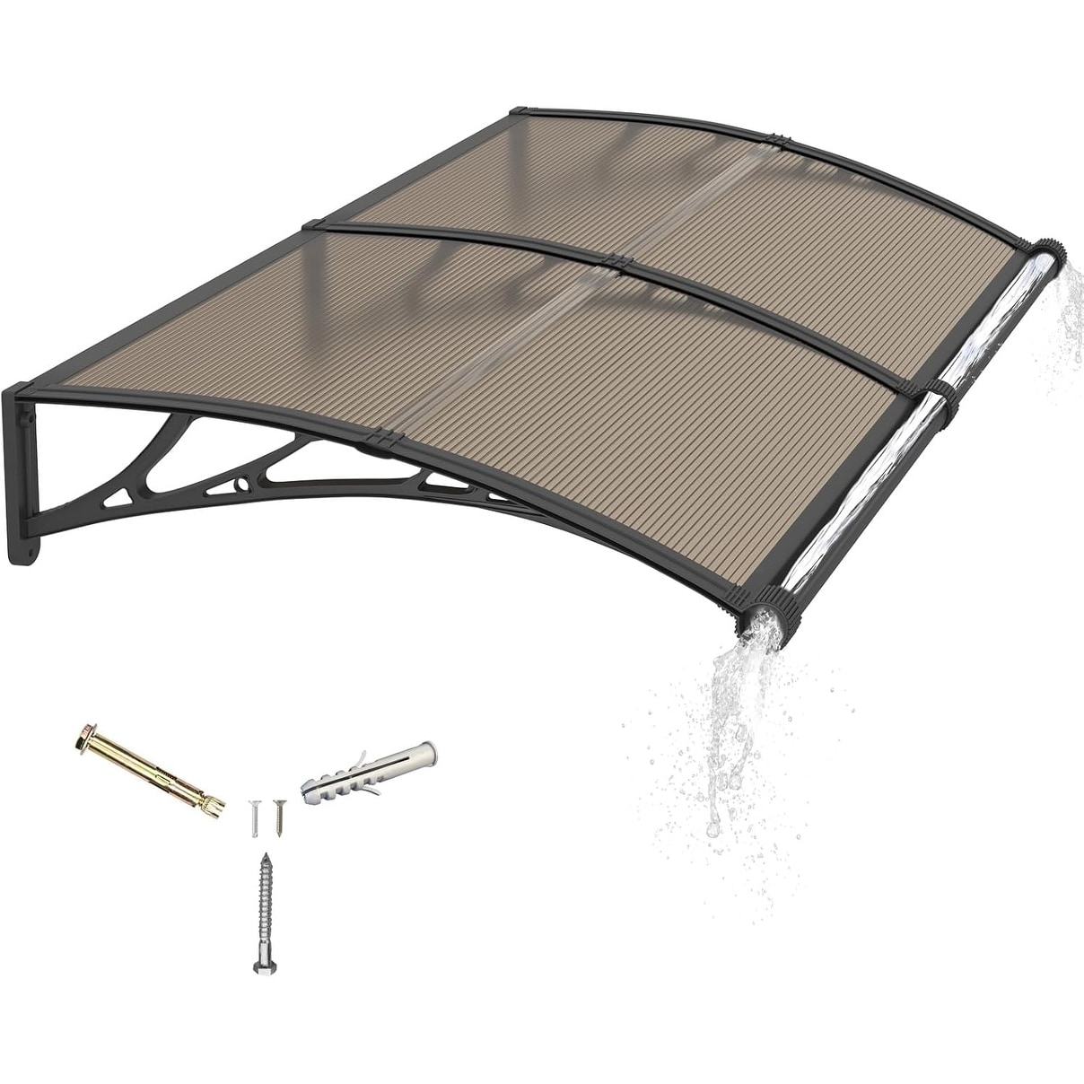 32x60 Inches Polycarbonate Door Awning with UV, Rain, and Snow Protection, Easy Installation for Porch, Patio, Window, Deck