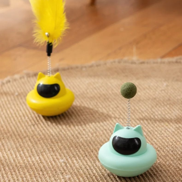 Cat Windmill Toy, Interactive Turntable Puzzle Game & Toothbrush For Kittens yellow