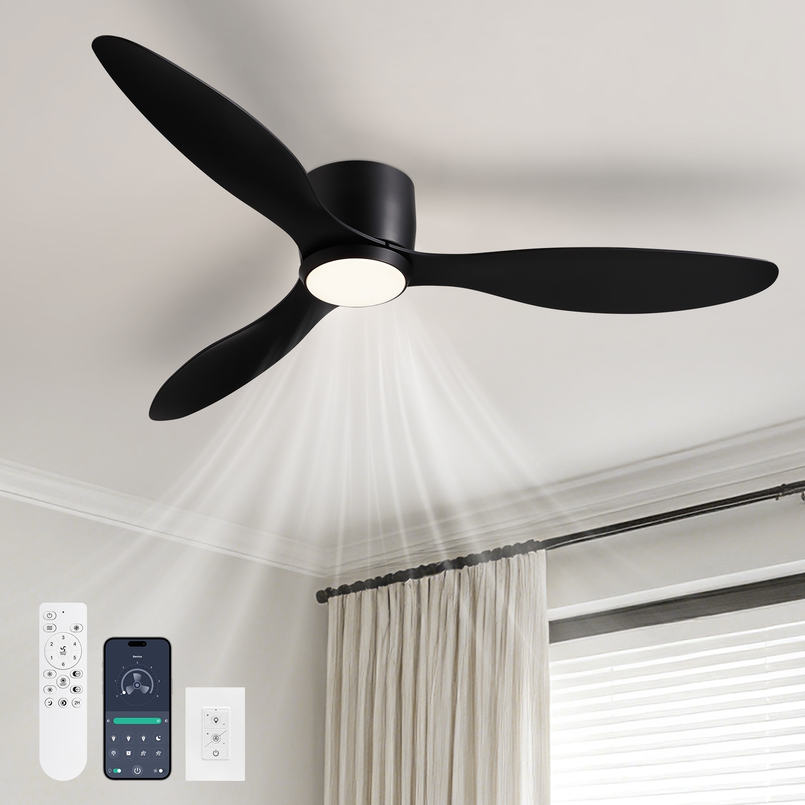 Smart 3-Blade Low Profile Ceiling Fan with Dimmable LED Light