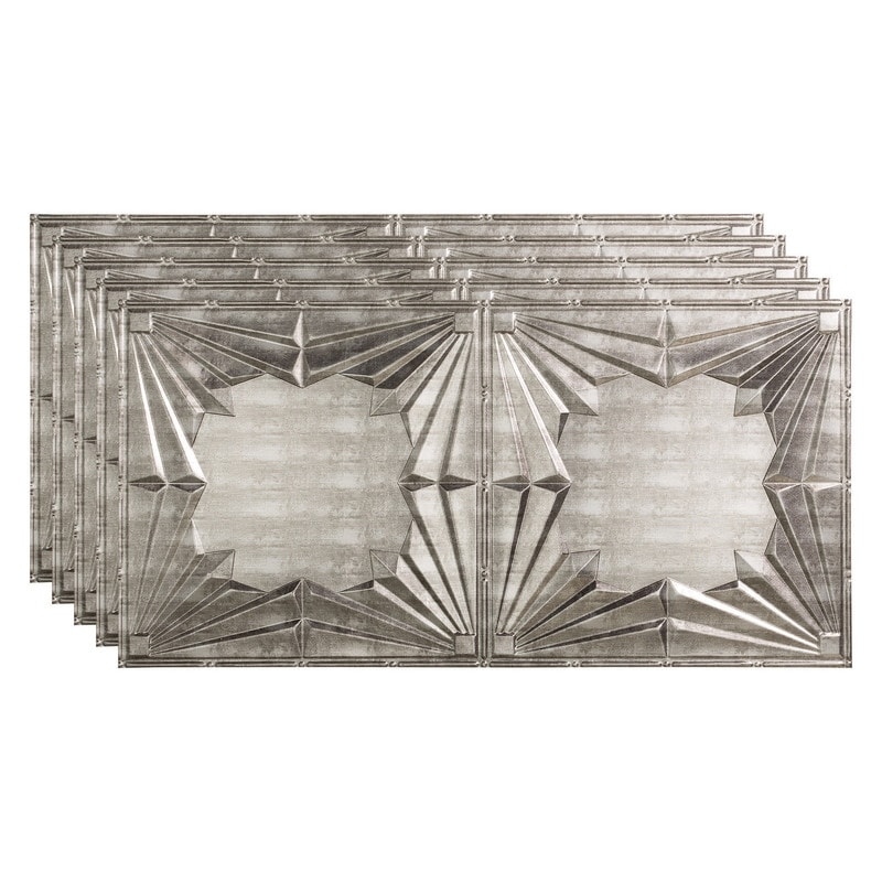 FASÄDE Art Deco Decorative Vinyl 2ft x 4ft Glue Up Ceiling Panel in Crosshatch Silver (5 Pack)