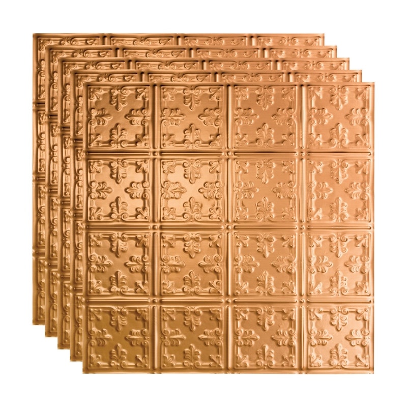 FASÄDE Traditional Style 10 Decorative Vinyl 2ft x 2ft Lay in Ceiling Panel in Polished Copper (5 Pack)