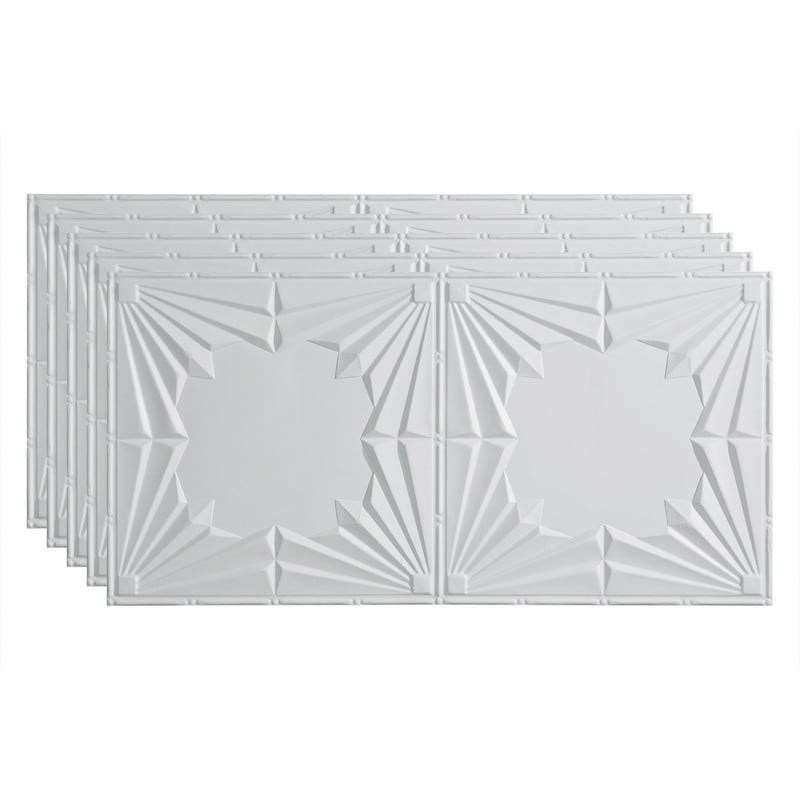 FASÄDE Art Deco Decorative Vinyl 2ft x 4ft Glue Up Ceiling Panel in Gloss White 5 Pack