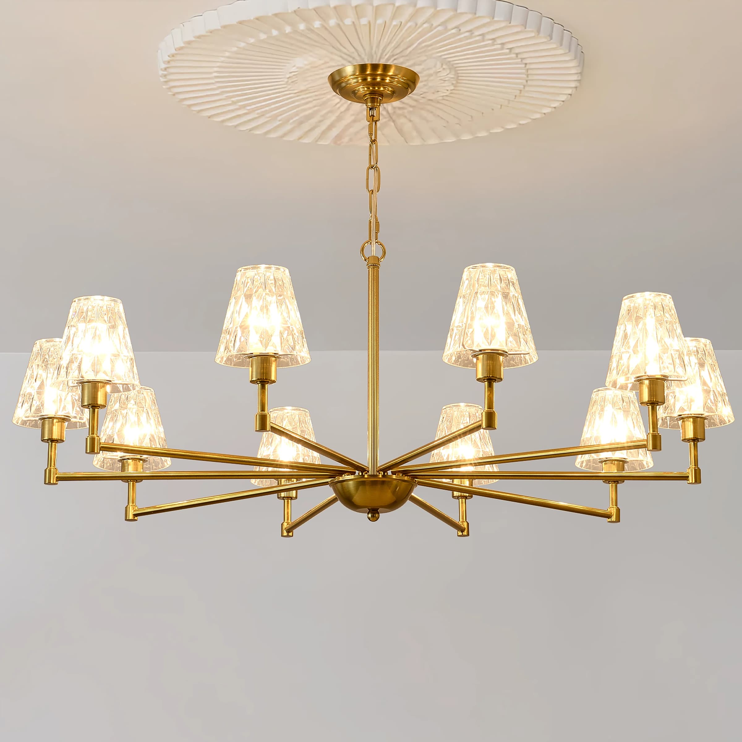 Gold Mid-Century Modern Chandelier 39.37” Hand-Blown Glass Shades, 8/10 Arm Minimalist Lighting Fixture - 39.37" x 24.24"