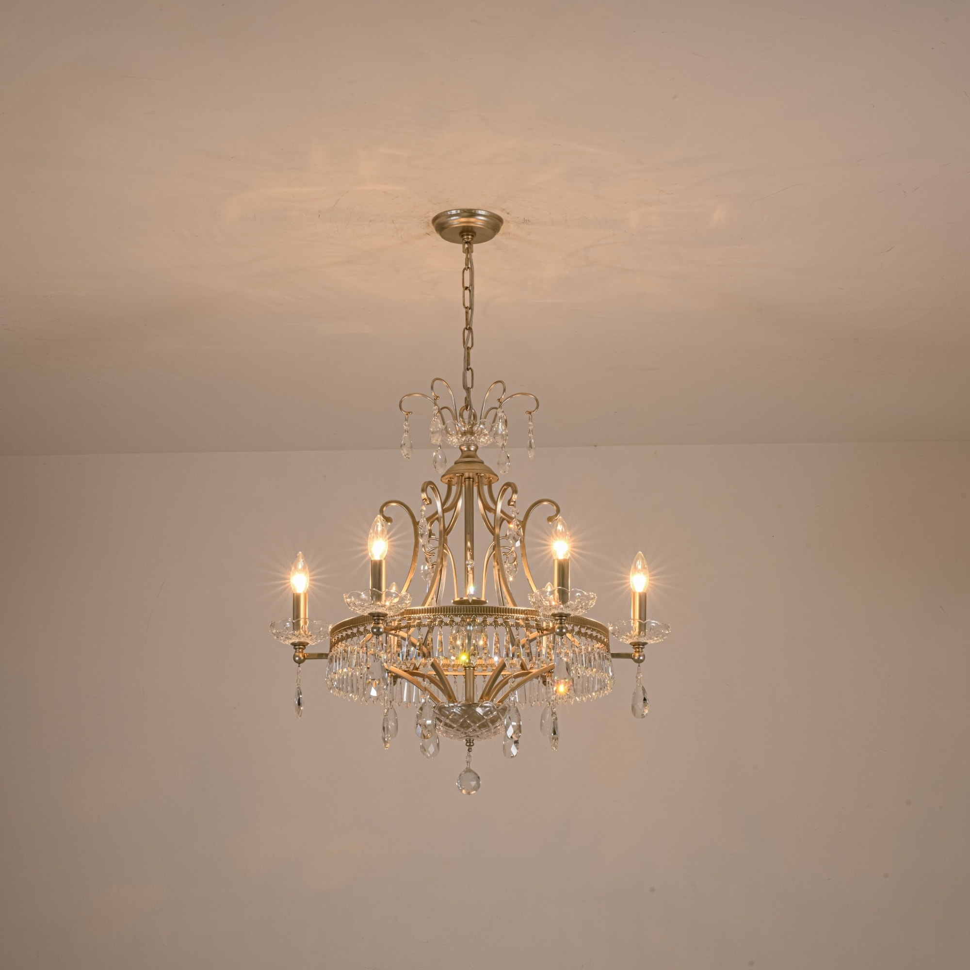 6-Light Vintage Brushed Silver Metal & Crystal Chandelier with Sparkling Crystal Accents for Dining Room - 6 Light