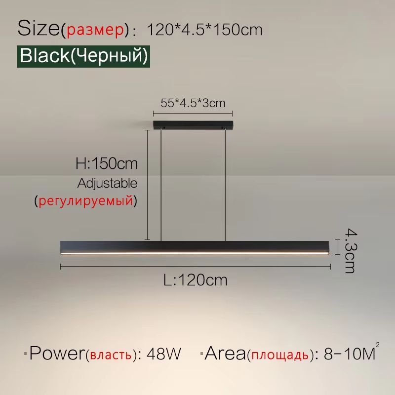 Nordic Modern LED Chandelier Minimalist Dining Table & Kitchen Pendant Light For Home Or Office black L120 Cm dimmable With Remote