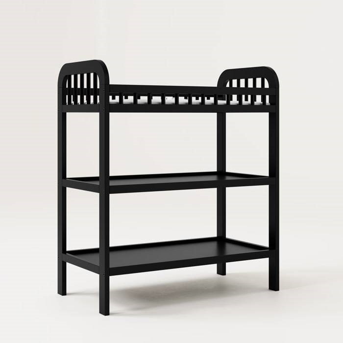 Black Wooden Baby Changing Table with Safety Rail and Water-Resistant Pad for Nursery - 39”H x 33.75”W x 18”D
