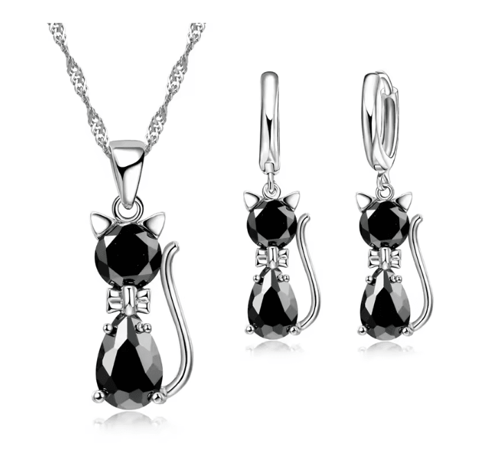 LunaSpark Cat Charm Jewelry Set green
