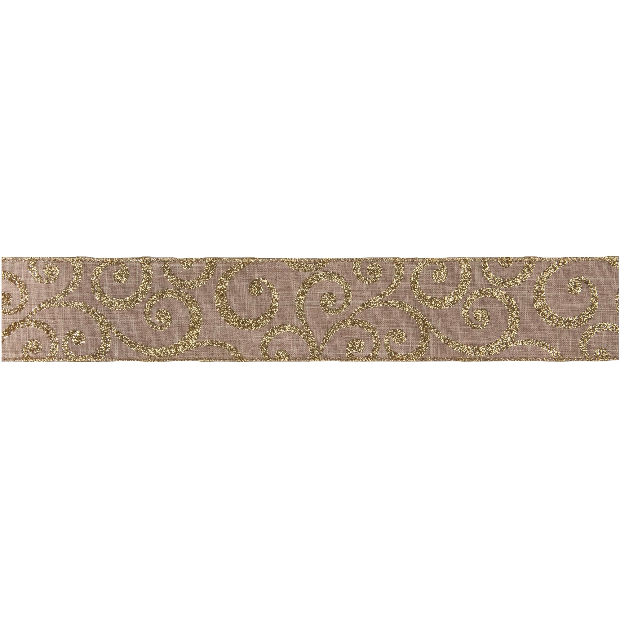 Burlap and Gold Scroll Christmas Wired Craft Ribbon 2.5" x 10 Yards - 2.5" x 10 Yards