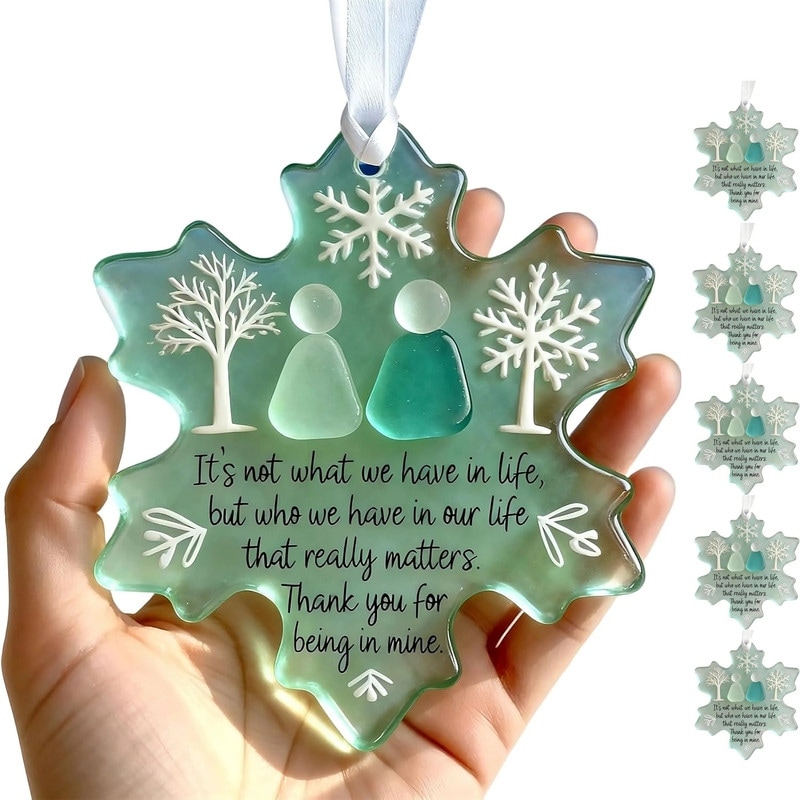 6PCS Snowflake-Shaped Sea Glass Oornament, Friendship Decor Christmas Pendant - 6pcs-Snowflake