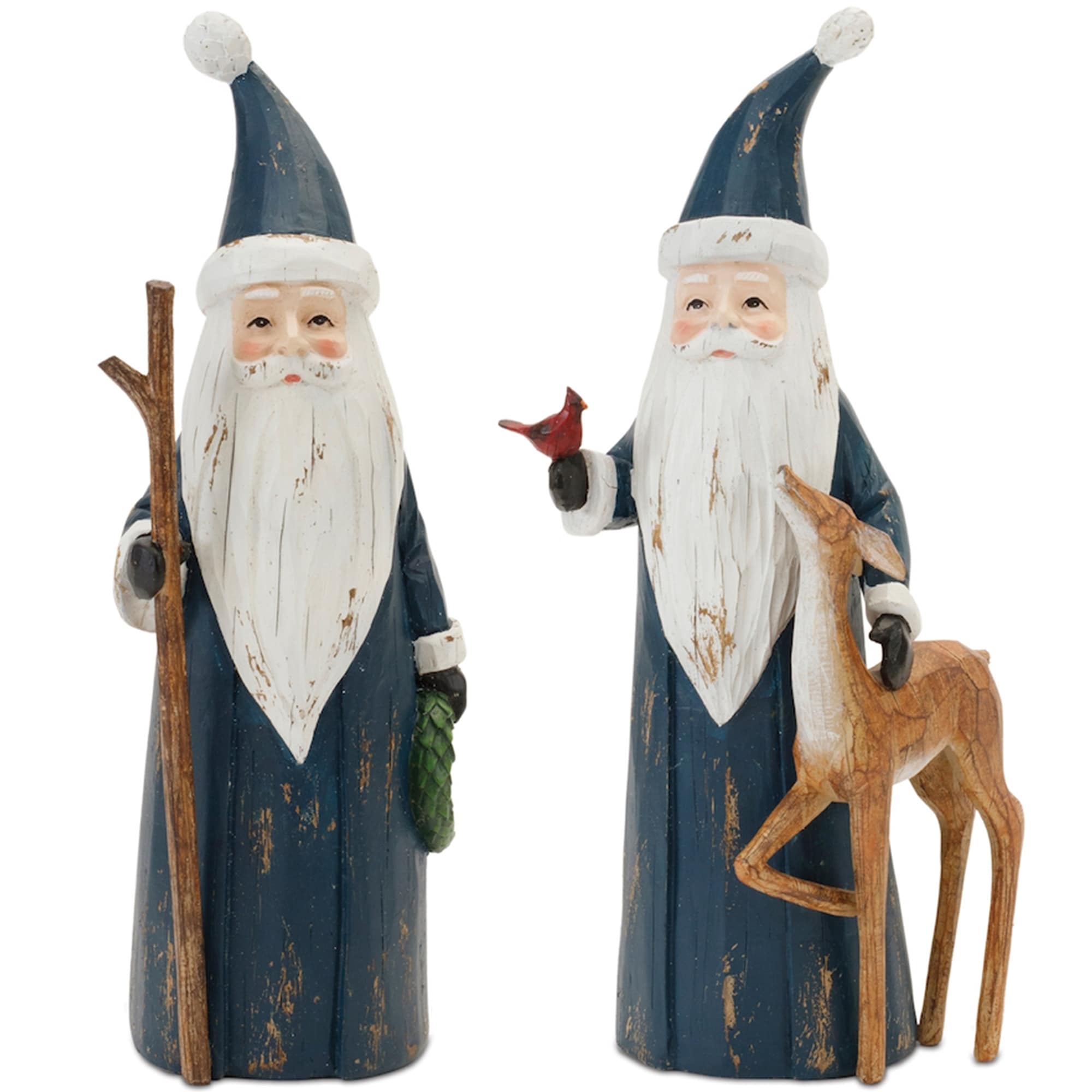 Carved Woodland Santa with Deer Figurine (Set of 2) - 6.25 x 4.25 x 12