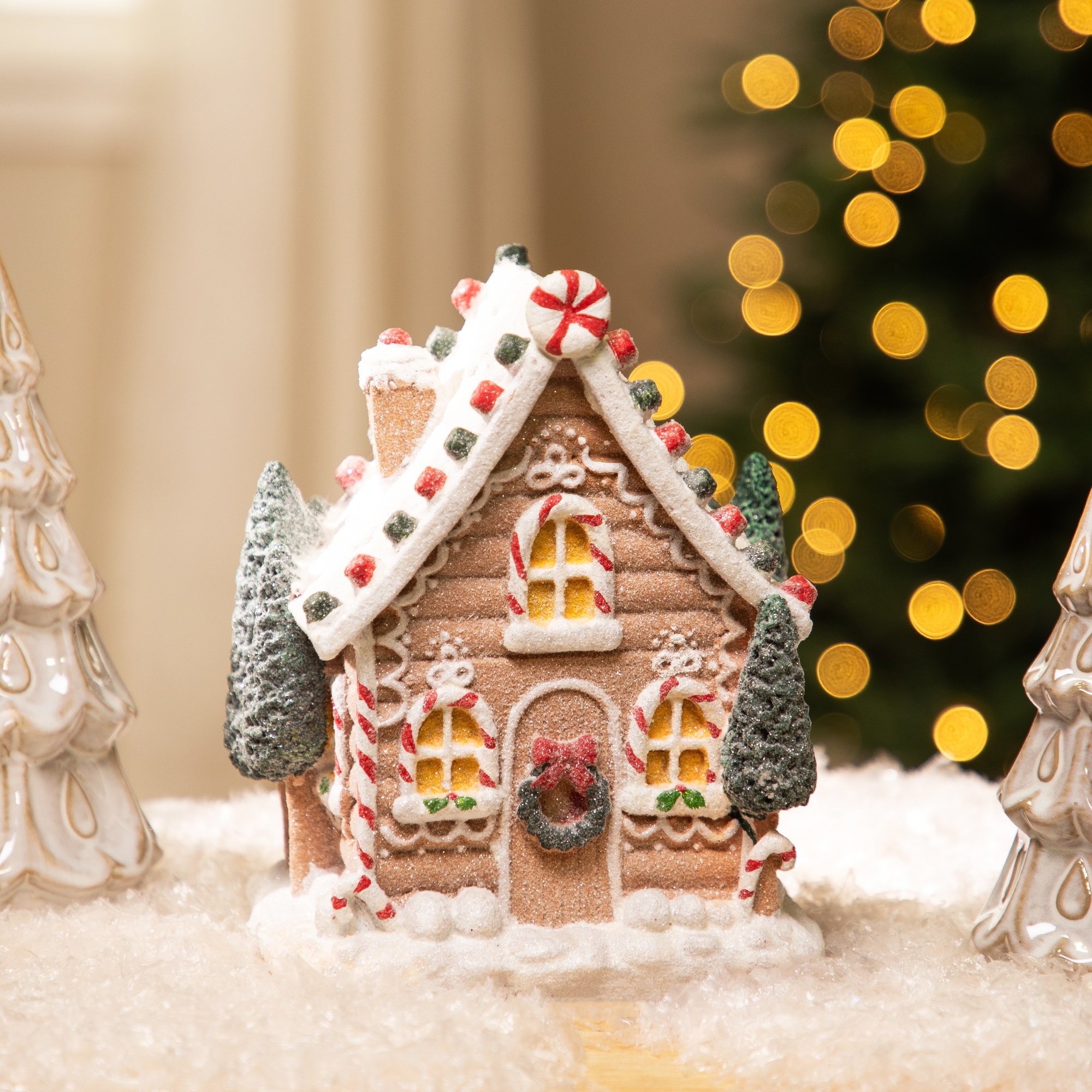 Snow Covered Gingerbread House with Candy Accents Christmas Decoration - 8"