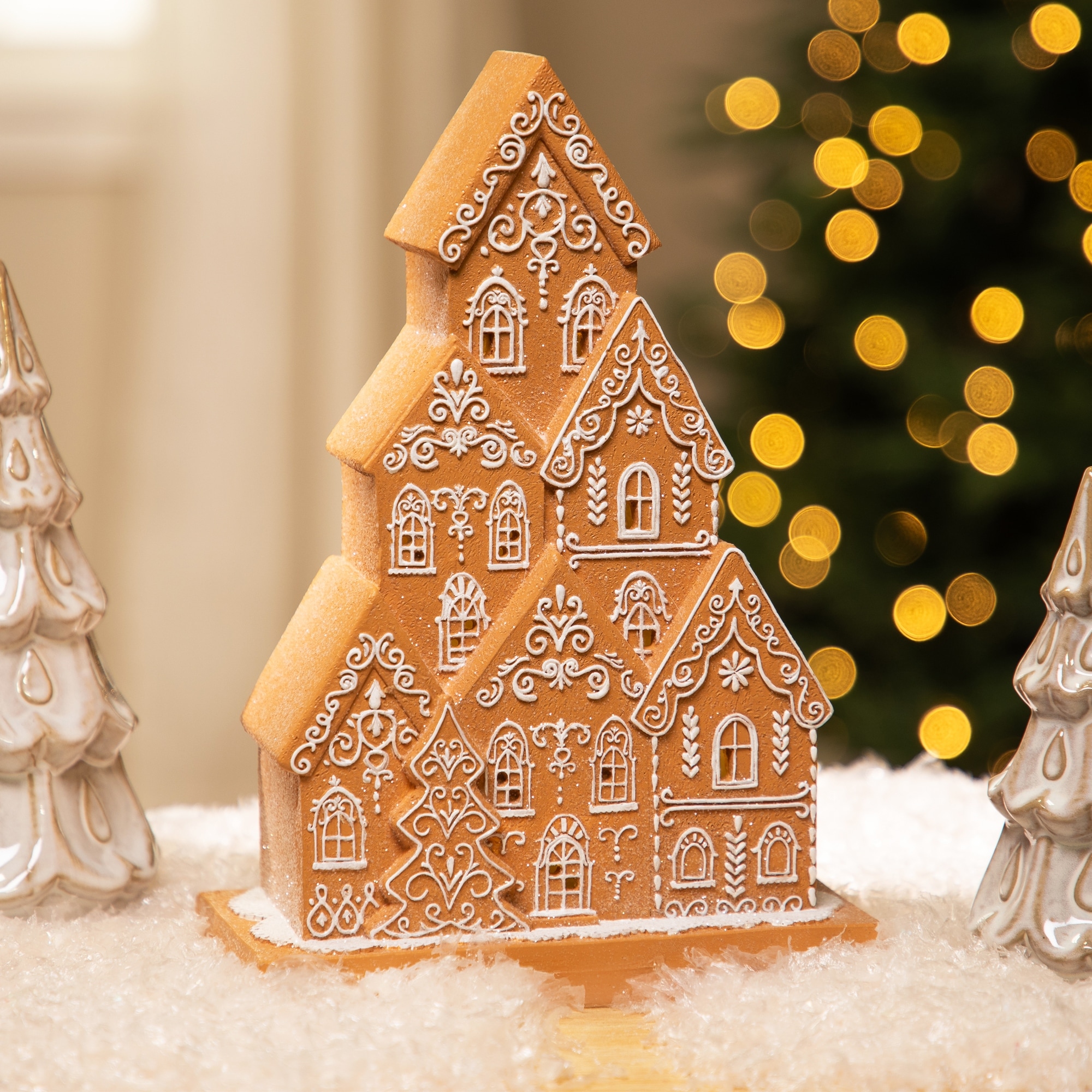 Lighted Scroll Stacked Houses Gingerbread Village Christmas Decoration - 10.25"