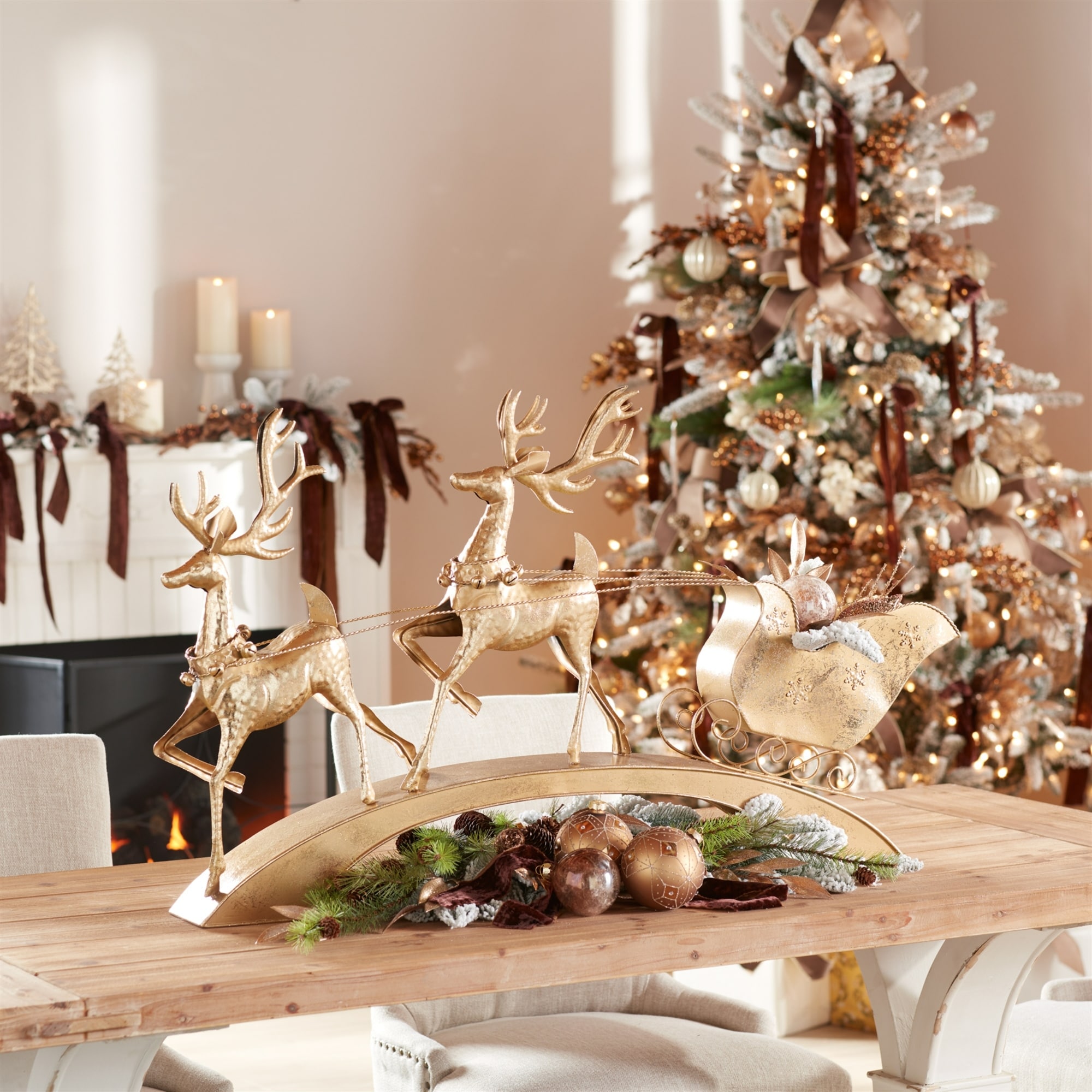 Reindeer with Sleigh Christmas Decoration - 42.5" - Gold