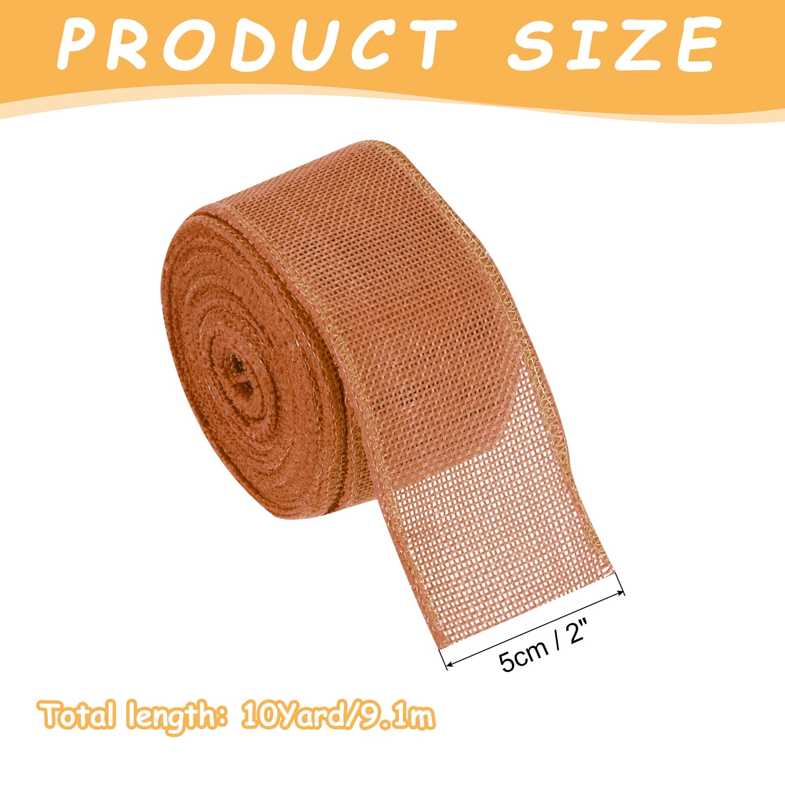 Burlap Ribbon Fabric Wired Edge Dark Orange for Wrapping