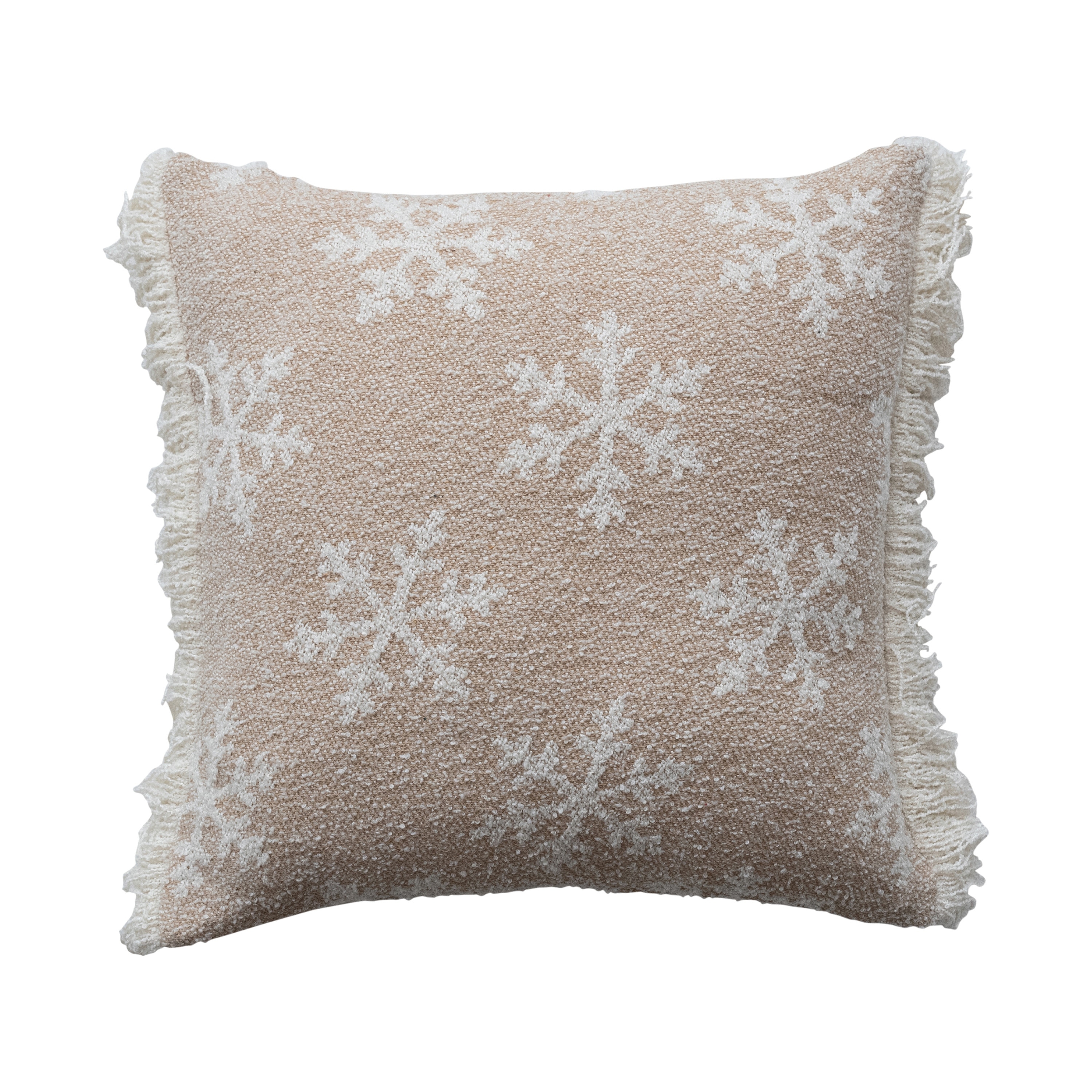Woven Fabric Jacquard Two-Sided Pillow with Snowflake Pattern and Fringe