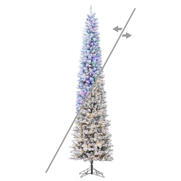 Vickerman 795224 - 9' x 31" Flocked Crest Pencil 1600 LED Light Pre-Lit Artificial Christmas Tree Christmas Tree (G256383LEDCC)