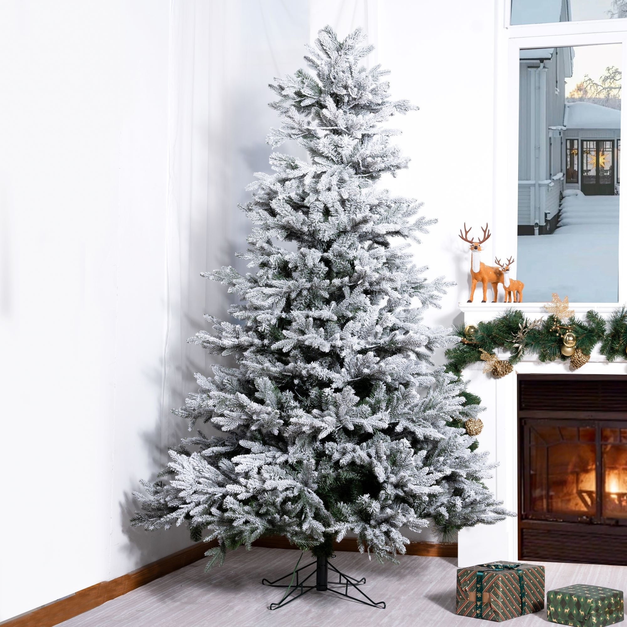 Snow Flocked Christmas Tree 7ft Artificial Hinged Pine Tree with White Realistic Tips Unlit