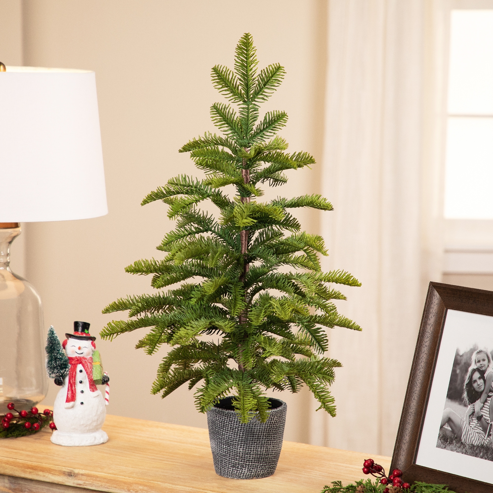 Pine Artificial Christmas Tree in Round Gingham Pot - 28" - Unlit - 2 Foot