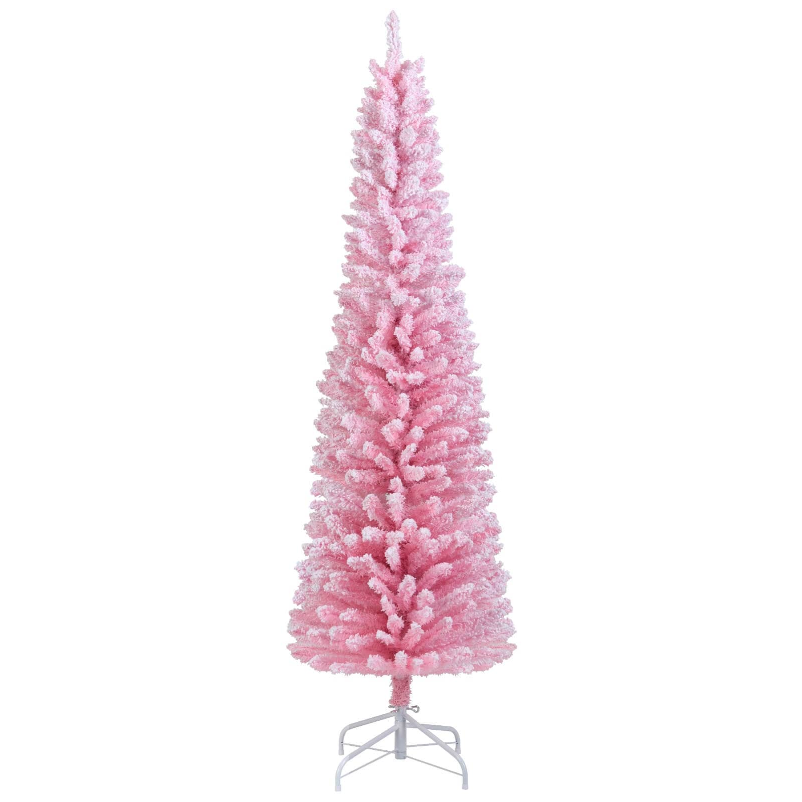 4/7.5/8/9 ft Slim Christmas Tree - 424-2152 PE+PVC Tips, Hinged Design,Metal Stand,Green