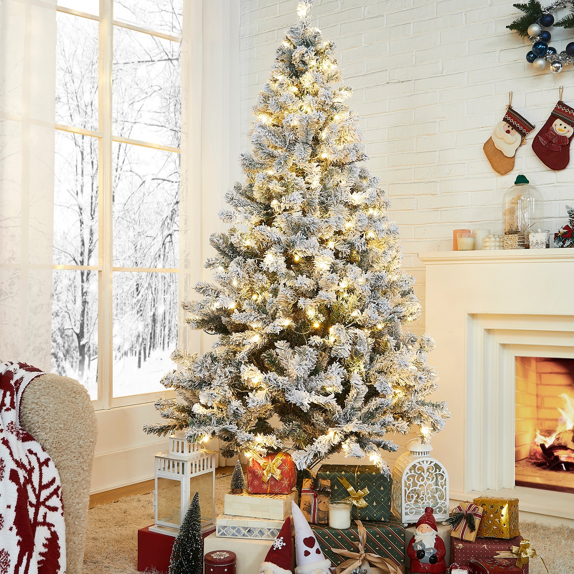 Flocked Snowy Christmas Tree with Hinged Design, 5/6/7ft