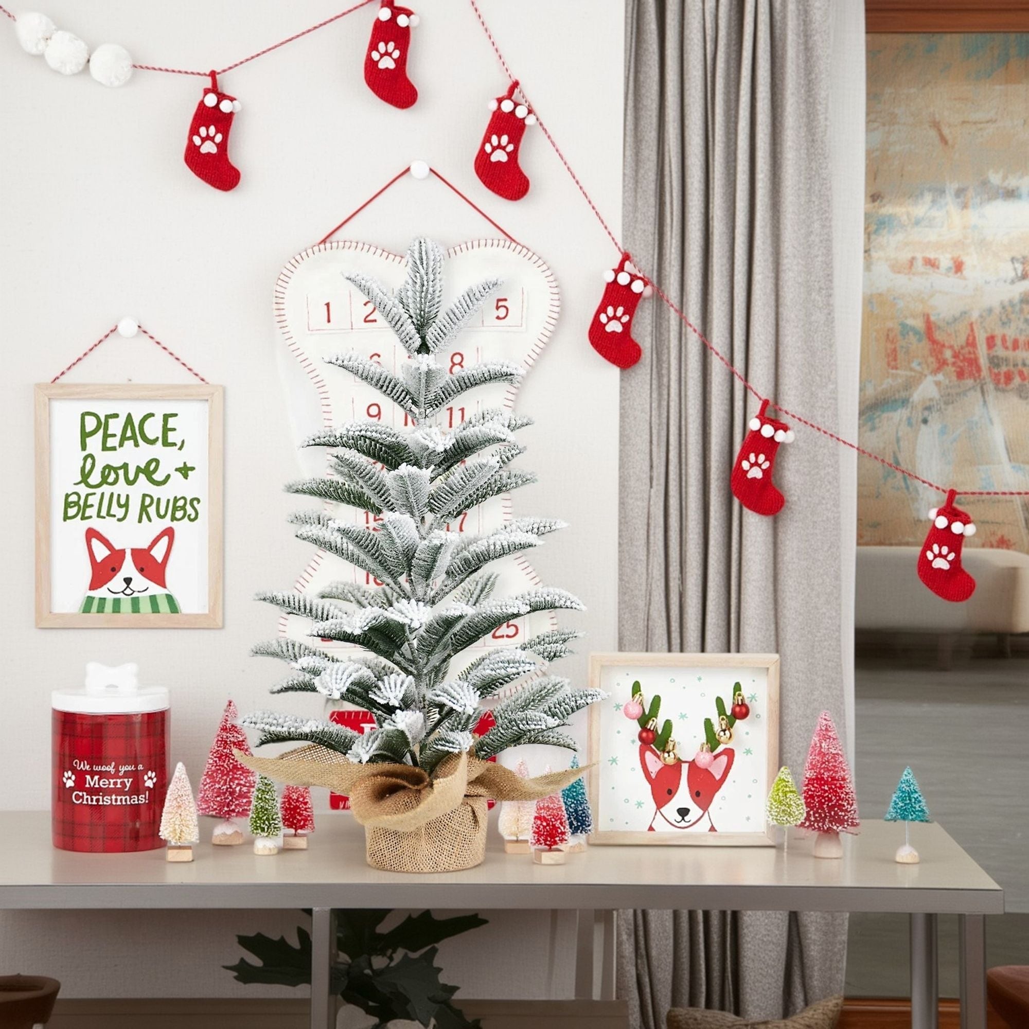 Flocked Tabletop Christmas Tree with Burlap Base - Mini Snowy PE Tree for Holiday Decor - 1.5 Foot