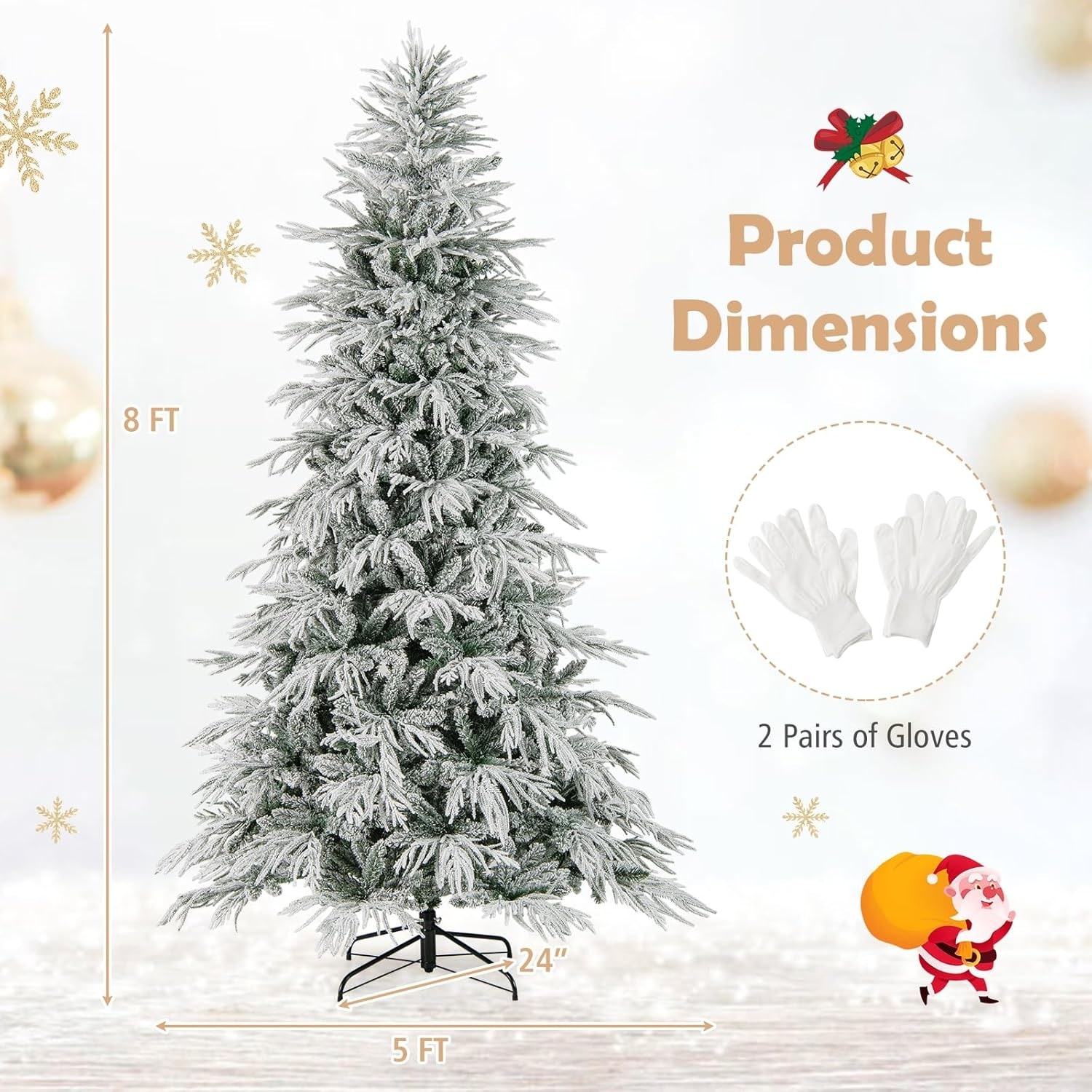 6/7/8 FT Pre-lit Artificial Christmas Tree Snow Flocked Xmas Tree
