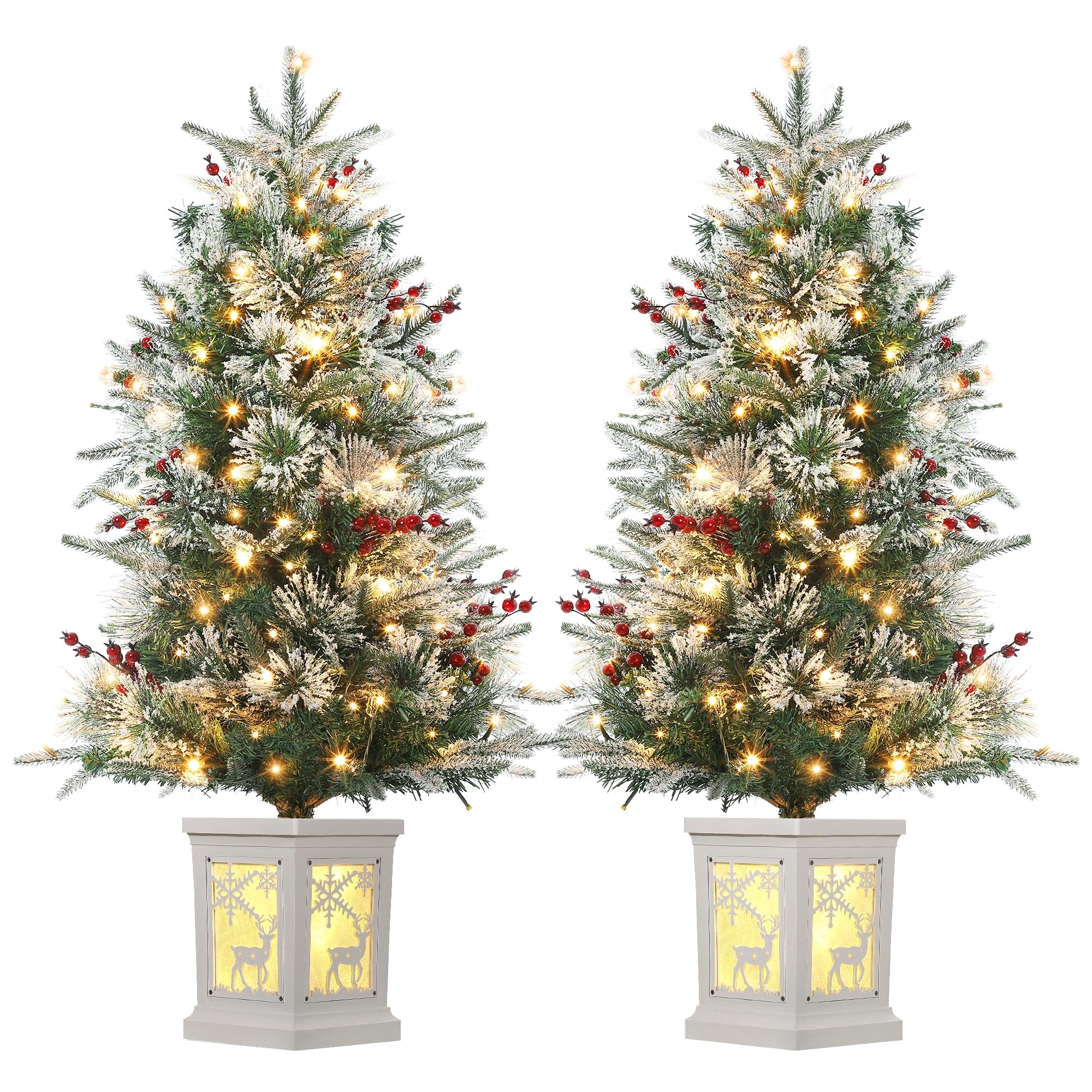 2Pcs 3FT Prelit Artificial Christmas Tree with 78 LED Warm White Lights(Timeable), Battery-Powered, Snow Flocked Xmas Tree