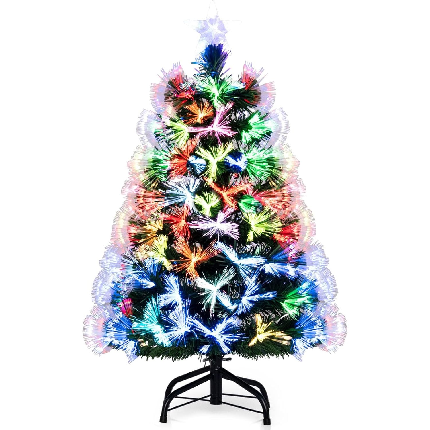 Costway 3/4/5/6 Ft Pre-Lit Fiber Optic PVC Christmas Tree Plastic