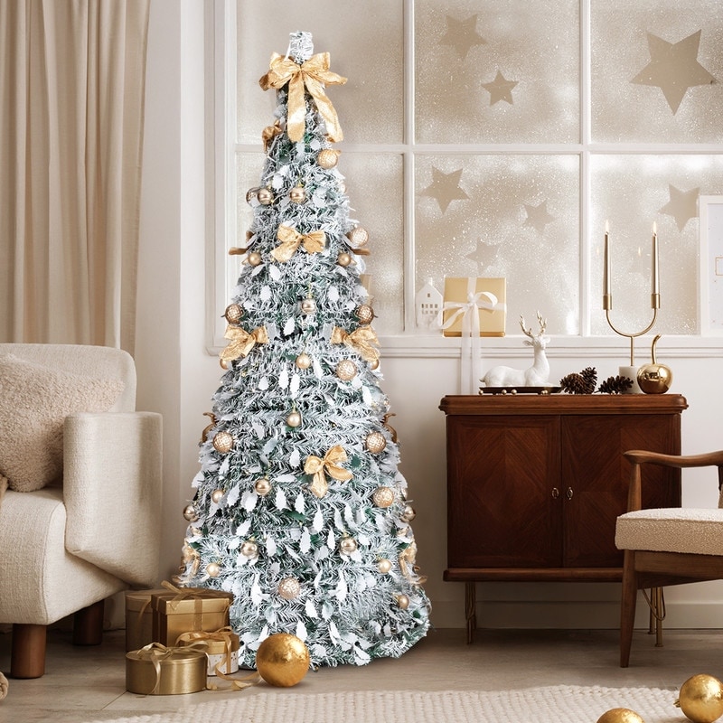 6 FT Snow Flocked Pre-lit Artificial Pop Up Christmas Tree for Home Office Store Holiday Deco, Snowy Green