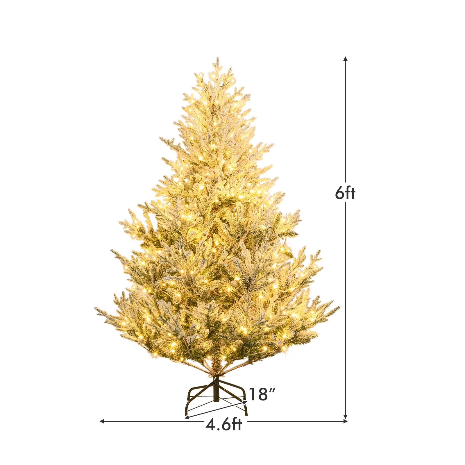 6/7/8 FT Pre-Lit Snow Flocked Xmas Tree with Branch Tips and LEDs - White & Green