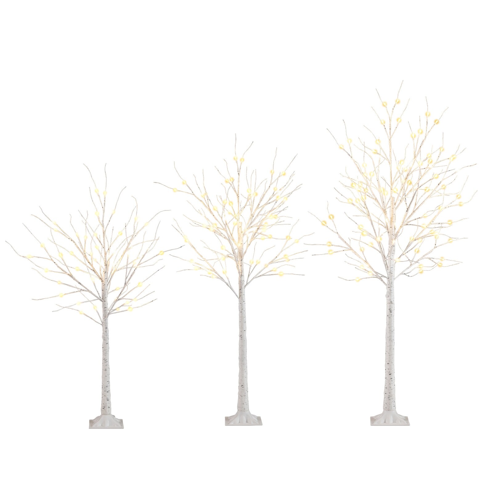 4/5/6 FT Set of 3 Pre-Lit Artificial Birch Christmas Trees w/216 LEDs - White