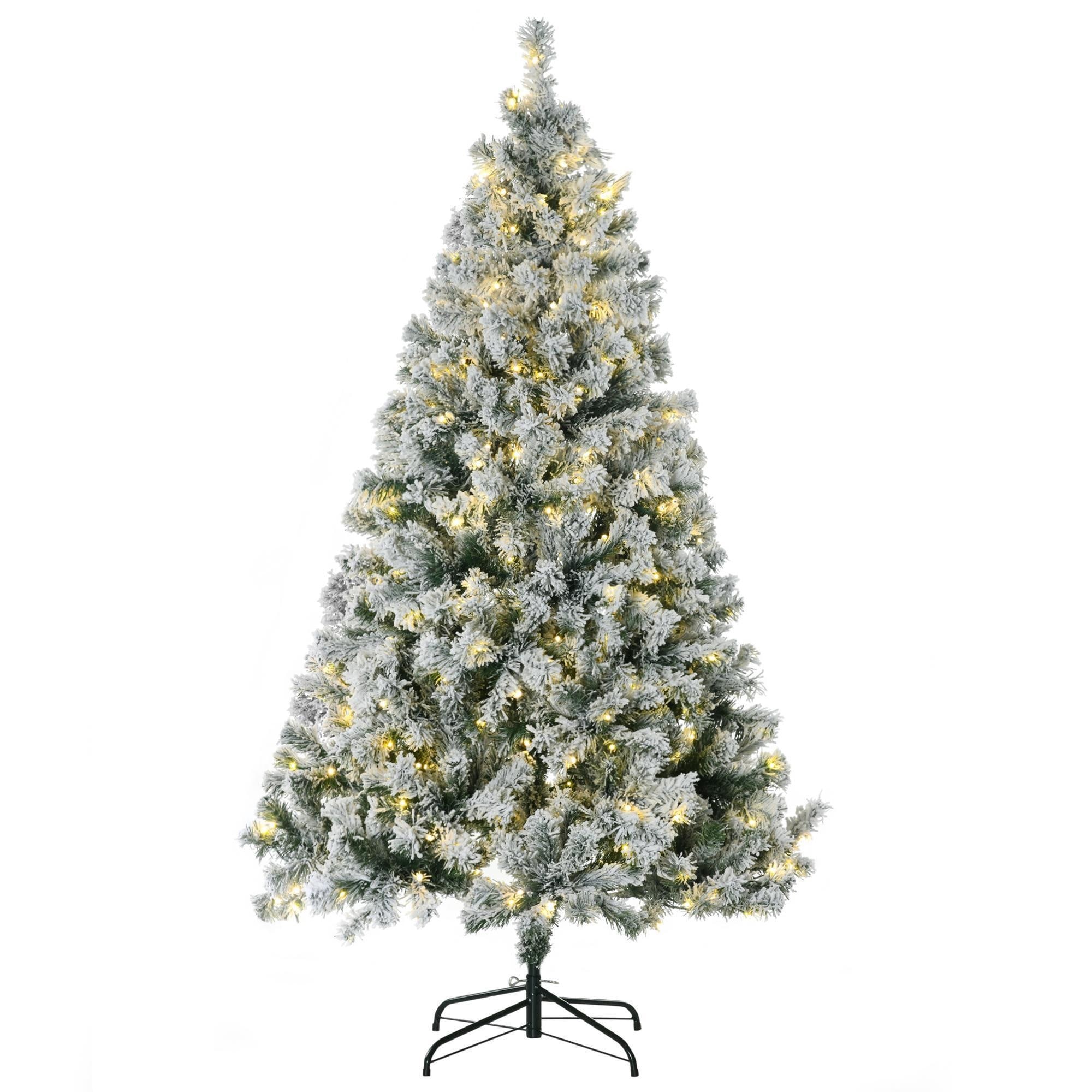 6Ft Prelit Snow Flocked Artificial Christmas Tree With Pencil Shape, Pine Realistic Branches, Warm White Led Lights, Auto Open