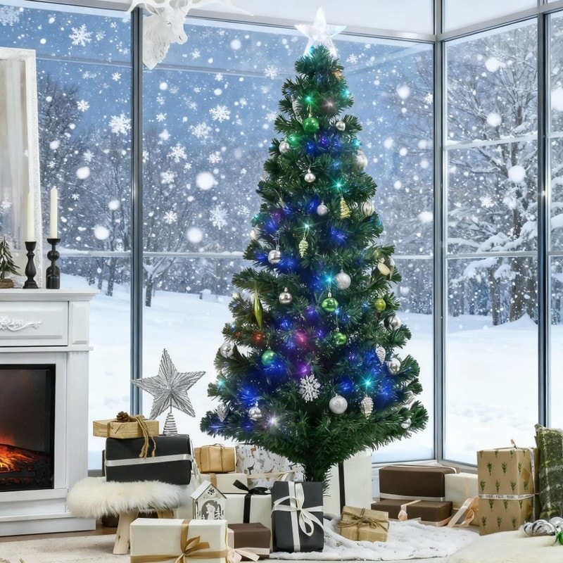 6-Foot Tall Pre-Lit Artificial Christmas Tree Holiday Decorations