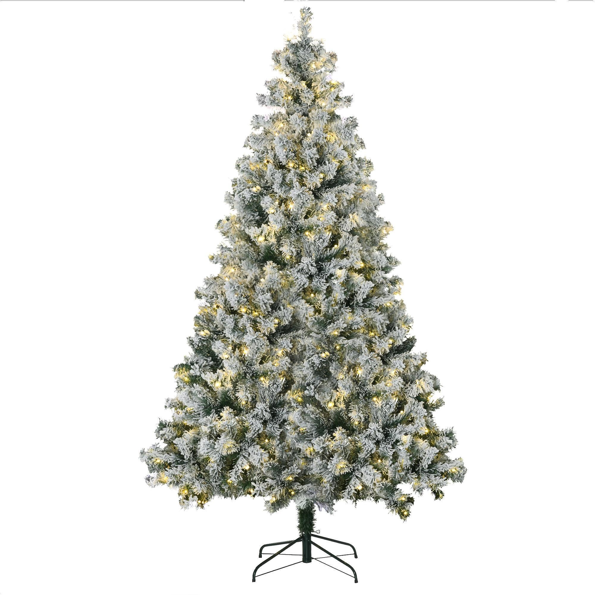 Costway 6/7 FT Pre-Lit Flocked Christmas Tree Hinged Xmas Decoration