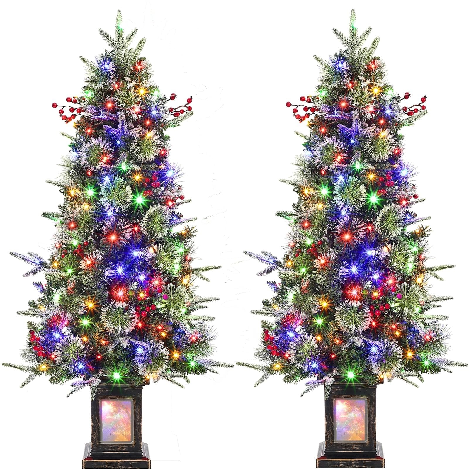 4.5ft Pre-Lit Christmas Tree with 150 Two-Color LED Lights, 8 Modes, Snowflakes and Berries